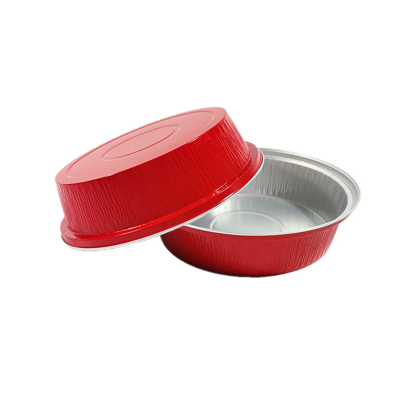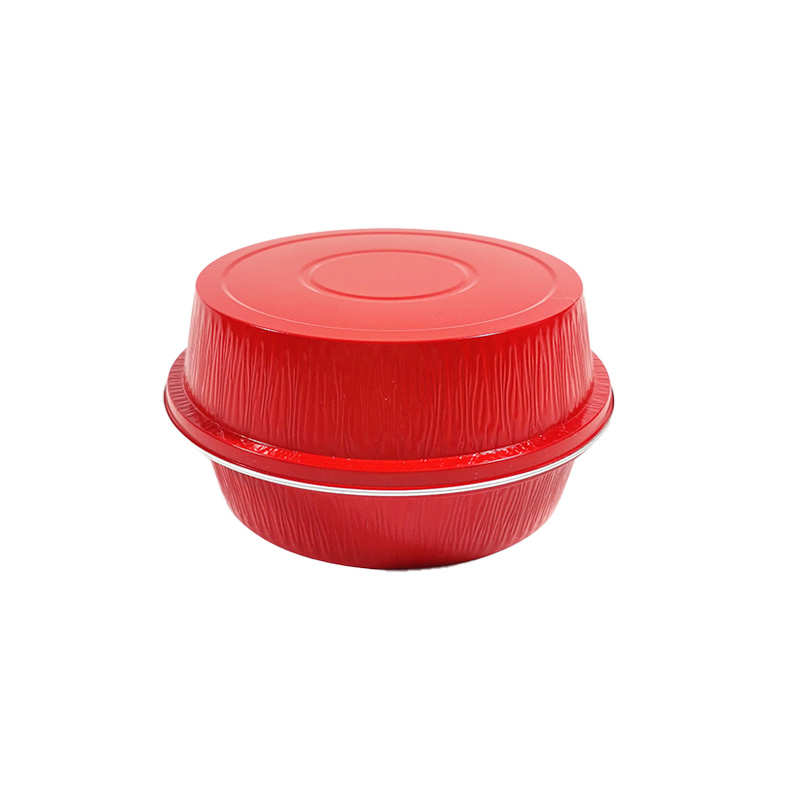It is crafted from food-safe aluminum foil, this red-coated round container is ideal for storing, heating, and serving meals. Its sturdy, leak-proof design ensures safe use for takeout, catering, and home cooking, while the smooth interior preserves flavor and freshness.